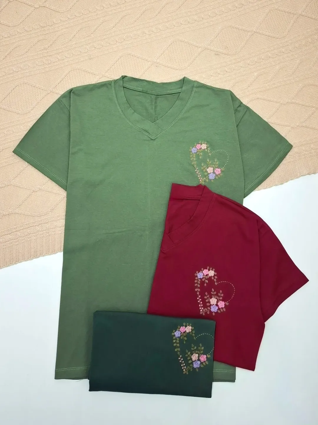 تیشرت گلدوزی قلب زنانه جنس سوپر نخپنبه