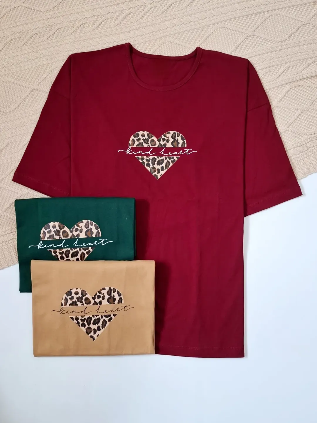 تیشرت سایز بزرگ زنانه مدل قلب پلنگی جنس نخپنبه اعلا