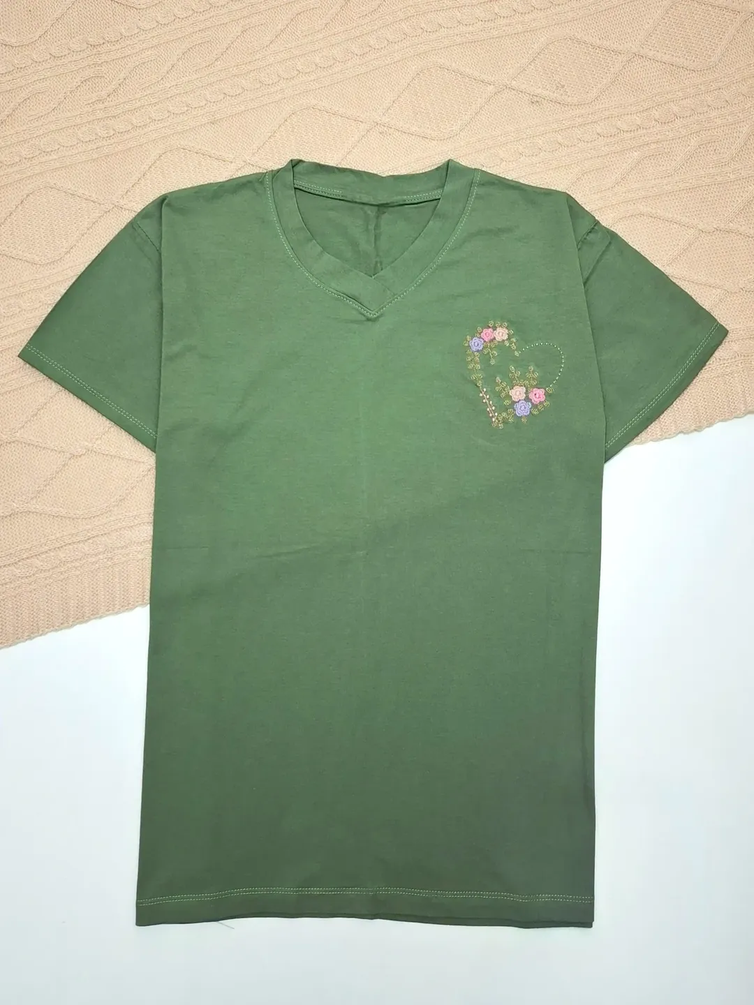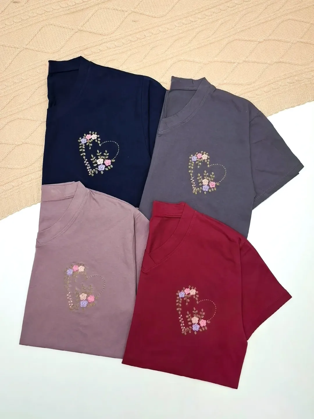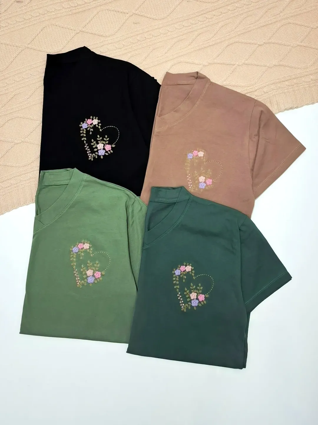 گلدوزی شده جنس سوپر نخپنبه کیفیت تضمینی مناسب سایز ۳۸ تا ۴۸ دورسینه ۱۱۲ با کشسانی ۱۳۲ قد تیشرت ۷۳ قد استین از یقه ۳۳