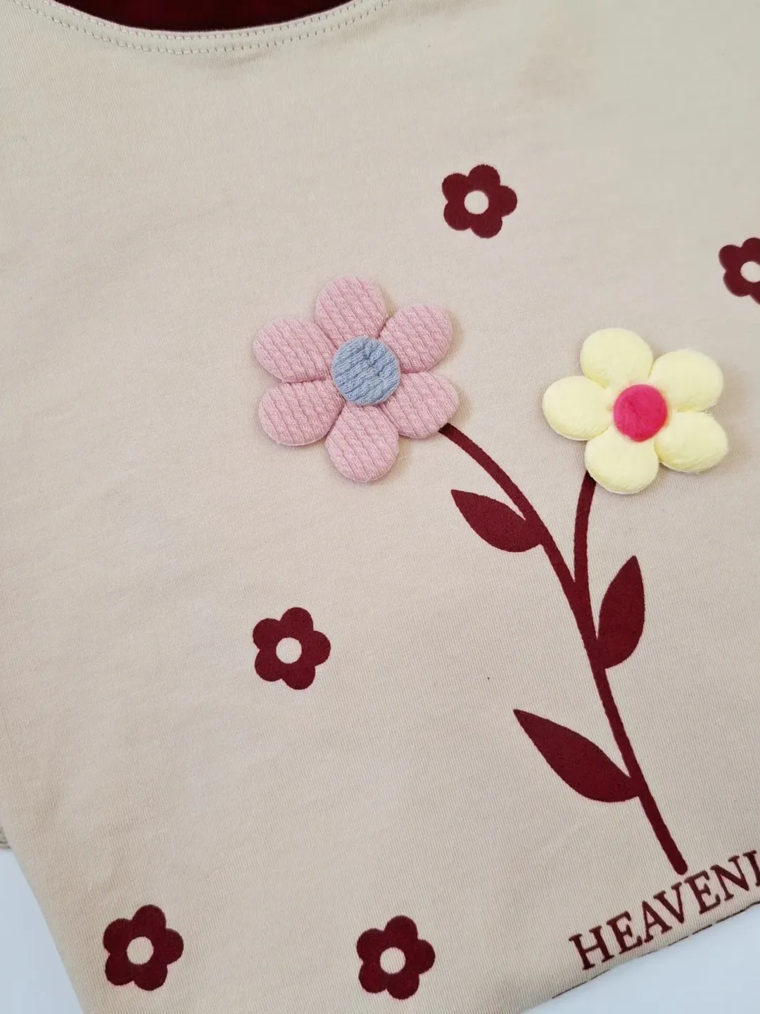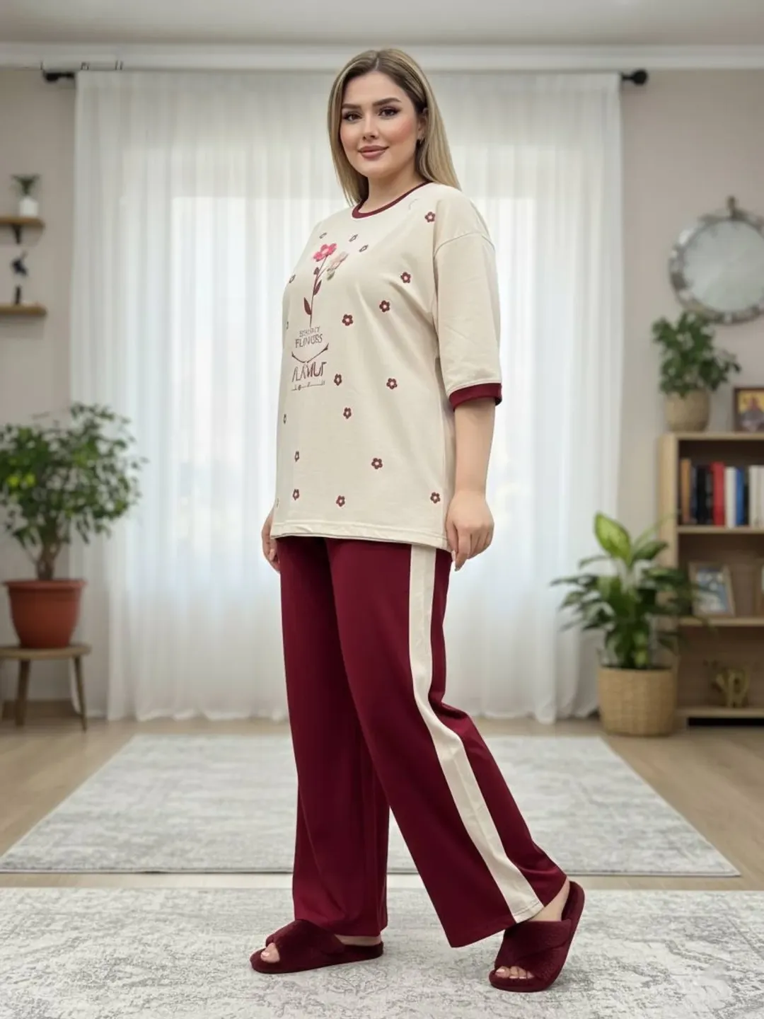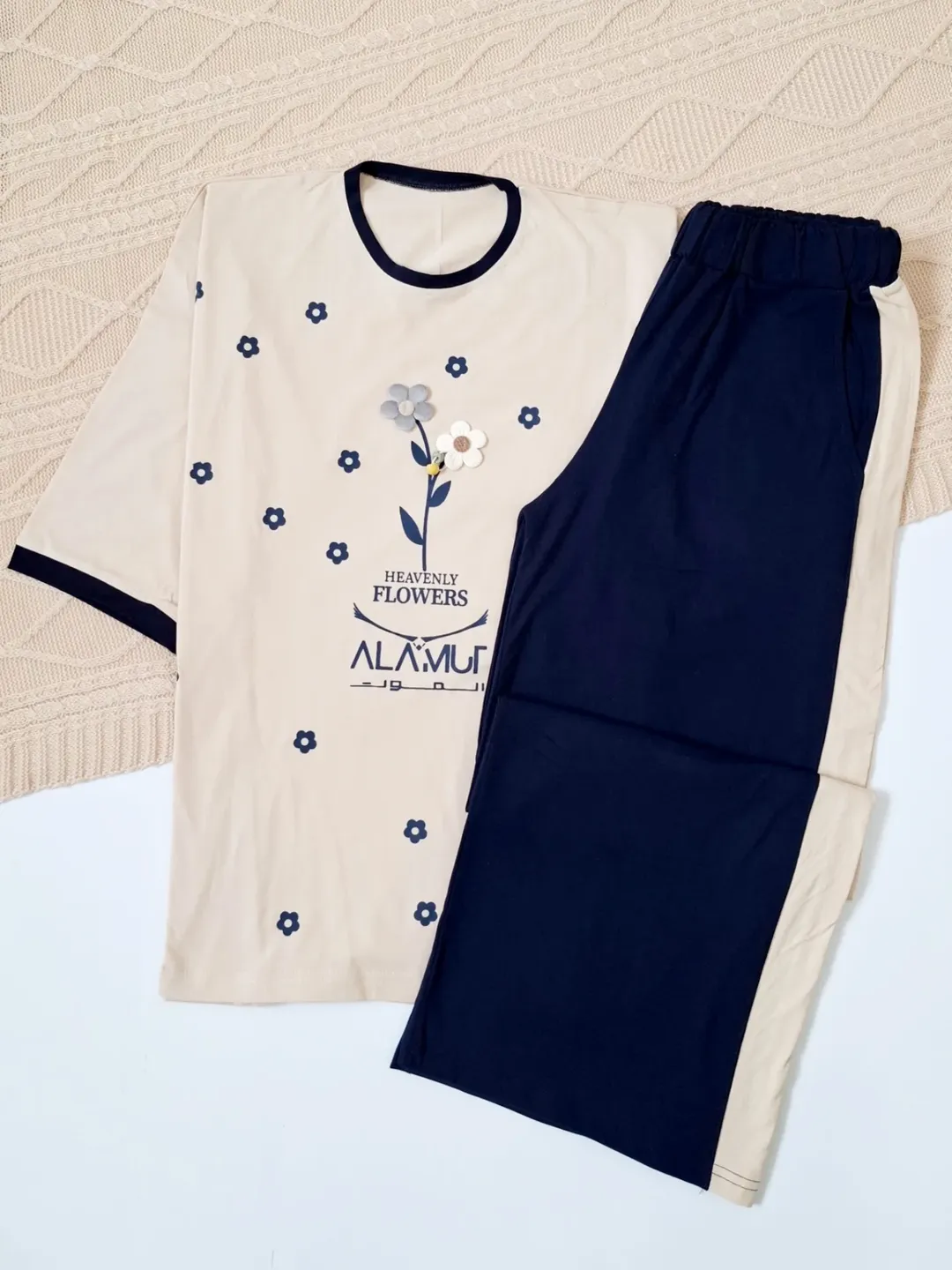 ست تیشرت شلوار گل برجسته زنانه مدل بگ جنس نخپنبه